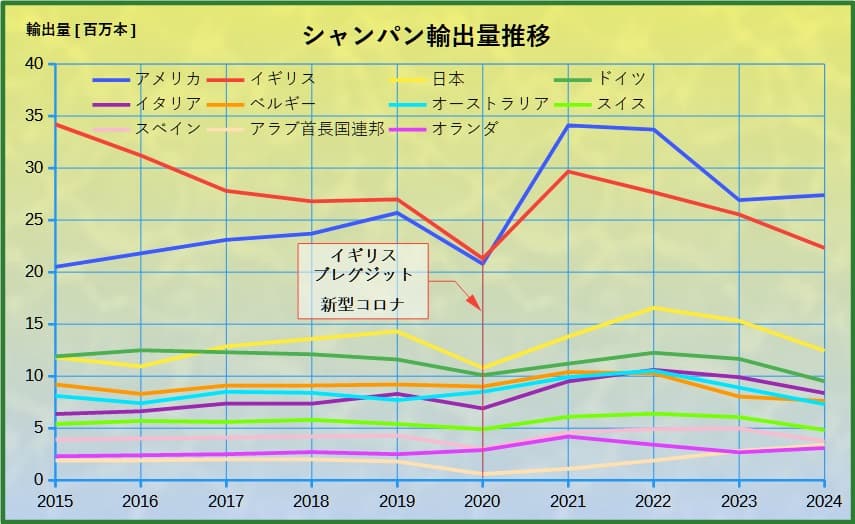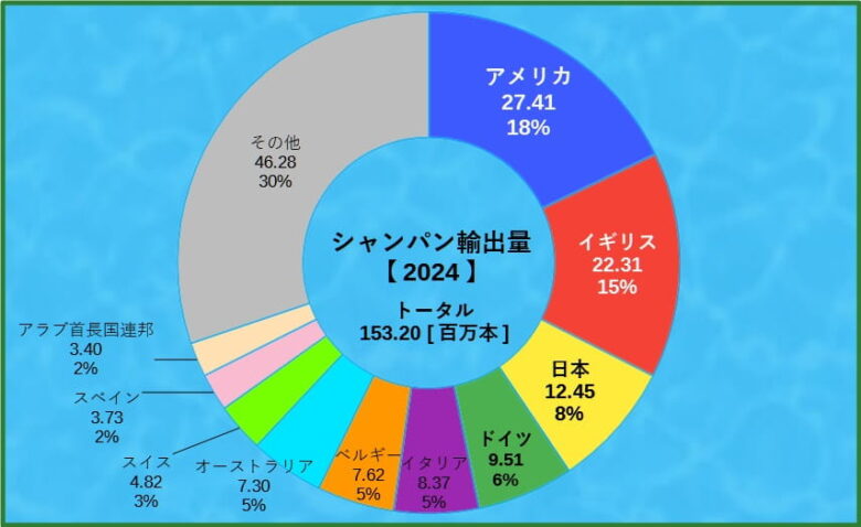 ●シャンパンの輸出量ランキング【2024】